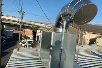 空調ダクト、換気・排煙・厨房ダクトなどの取付工事がメインになります。図面・設計から製造、設置や販売、メンテナンスまでを行っております。